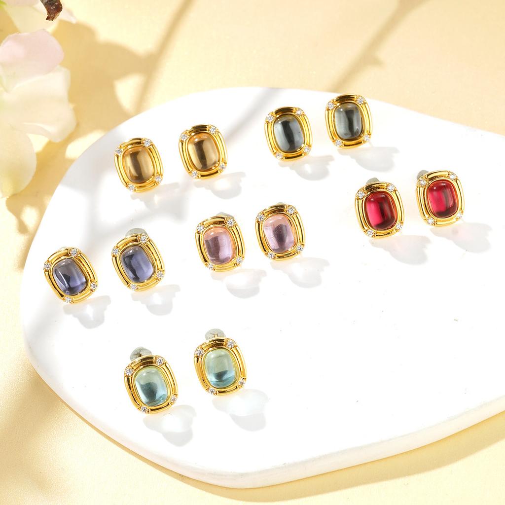 New French Light Luxury High-end Sense Niche Simple Dopamine Design Sense Inlaid Glass Small Silver Needle Ear Jewelry