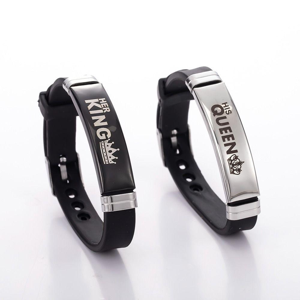 Stainless Steel Couple Bracelet Set King Queen Letter Wristband Lovers Bracelet Gifts Adjustable Valentine's Day Bracelets