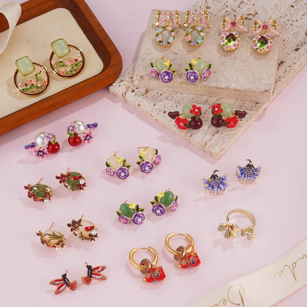 New Spring Pearl Flower Earrings Niche Design Premium Earrings 2026 Enamel Temperament Non-collision Earrings