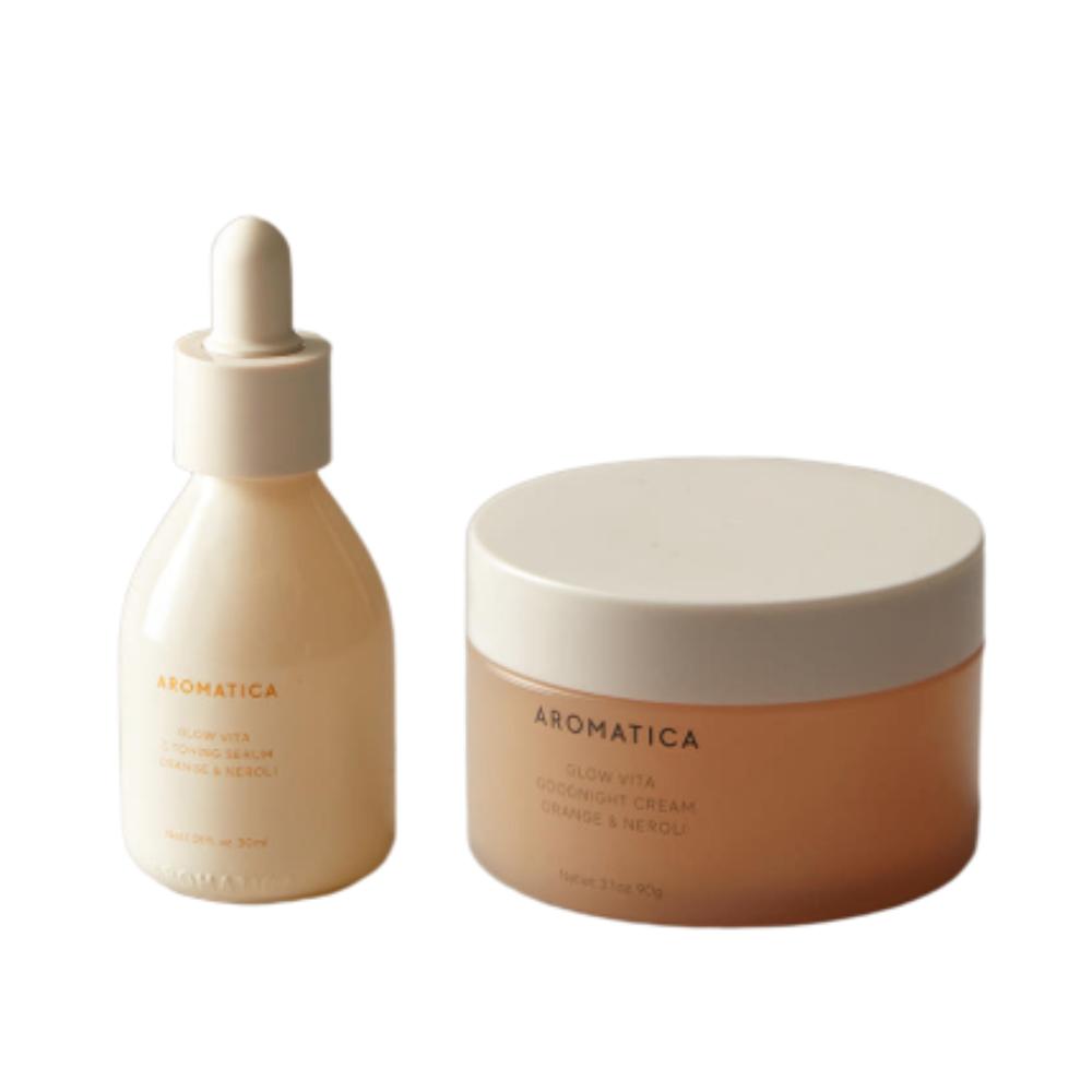 AROMATICA Glow Vita Serum & Good Night Cream 2-Item Set (30ml+90g) Brightening & Recovery Skin Care Kit