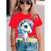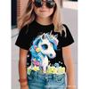 Cartoon Unicorn 3D Digital Casual Short-Sleeve T-Shirt, Suitable for Outdoor Wear, Cute Cartoon Print