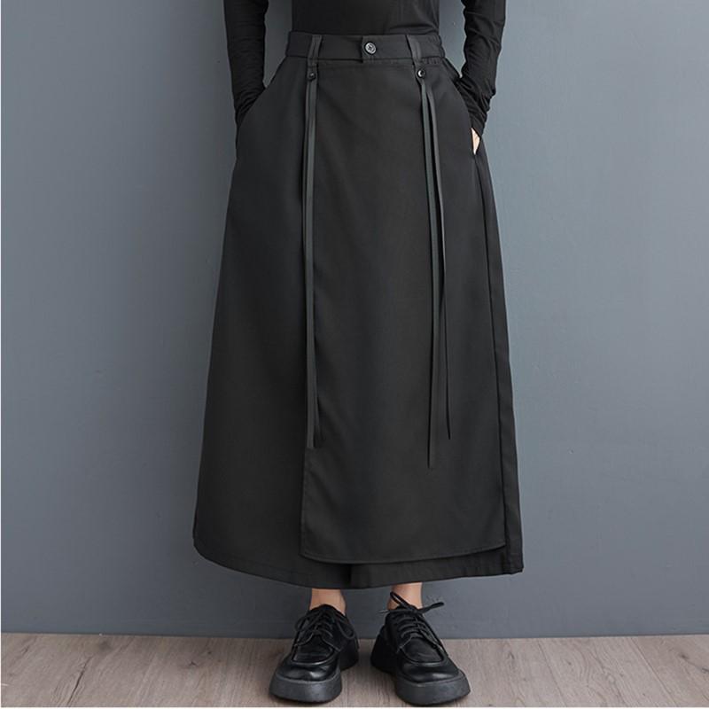 Black Plus Size Vintage High Waist Casual Loose Summer Wide Leg Skirt Pants Women Trousers