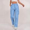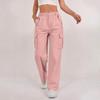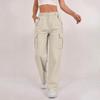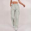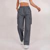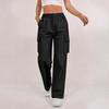 Women's Fashion Relaxed-Fit Pocket Straight-Leg Pants Sporty Wide-Leg Pants High-Waisted Casual Cropped Pants