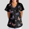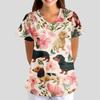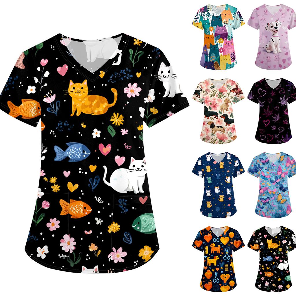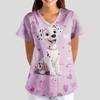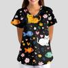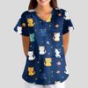 Women's Cartoon Cute Print Loose V-Neck Pocket Short-Sleeve Uniform