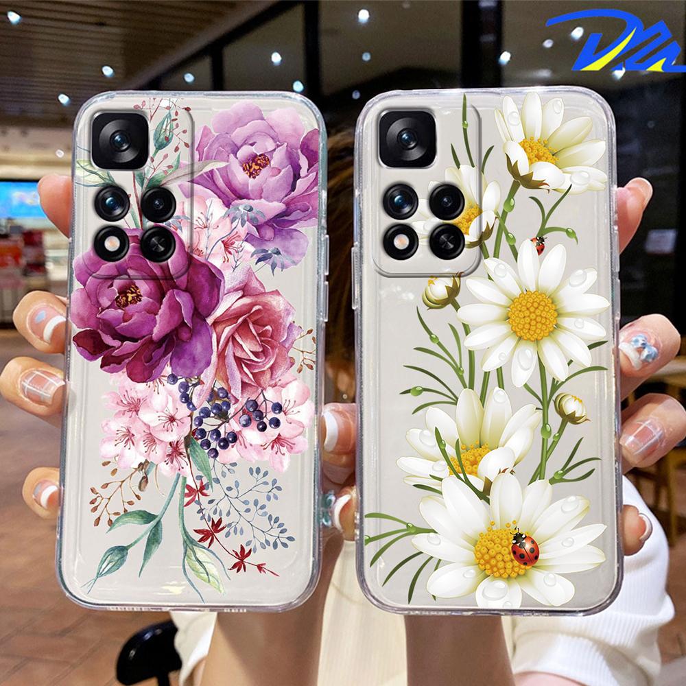 Rose Flower Oil Painting Daisy Phone Case For Xiaomi Redmi Note 11 11S 12 12S Pro Cover Silicone Transparent Clear Protection