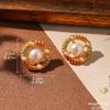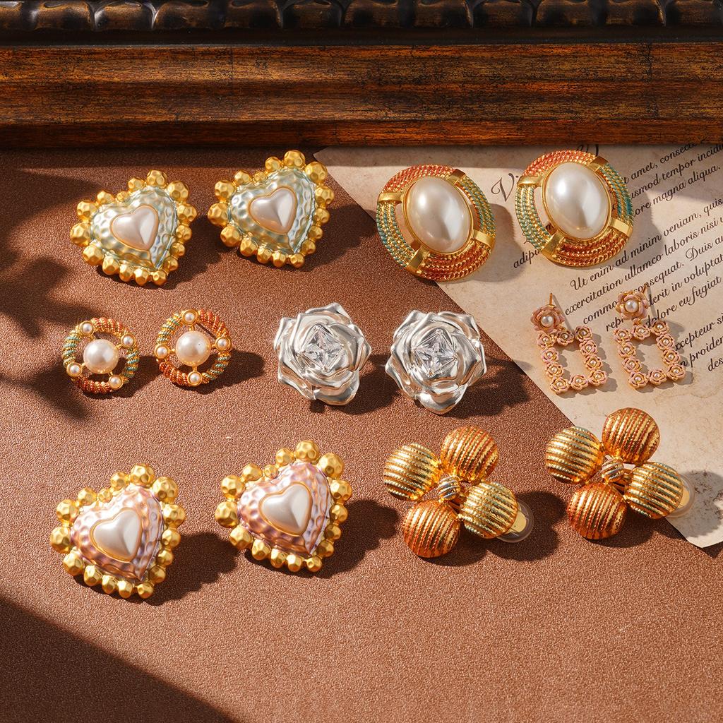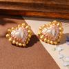 Vintage Flower Pearl Stud Earrings High-end Painted Love Fashion Niche Design Silver Needle Court Earrings