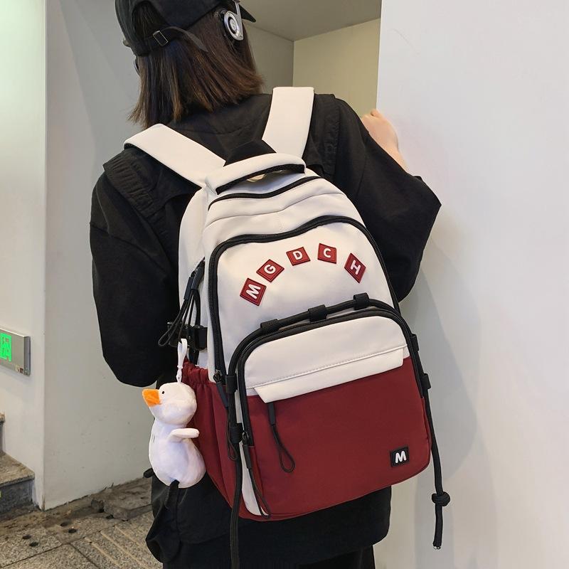 Korean Version of Simple Letter Printing Contrasting Color Large-capacity College Student Schoolbag 2024 New Travel Student Schoolbag