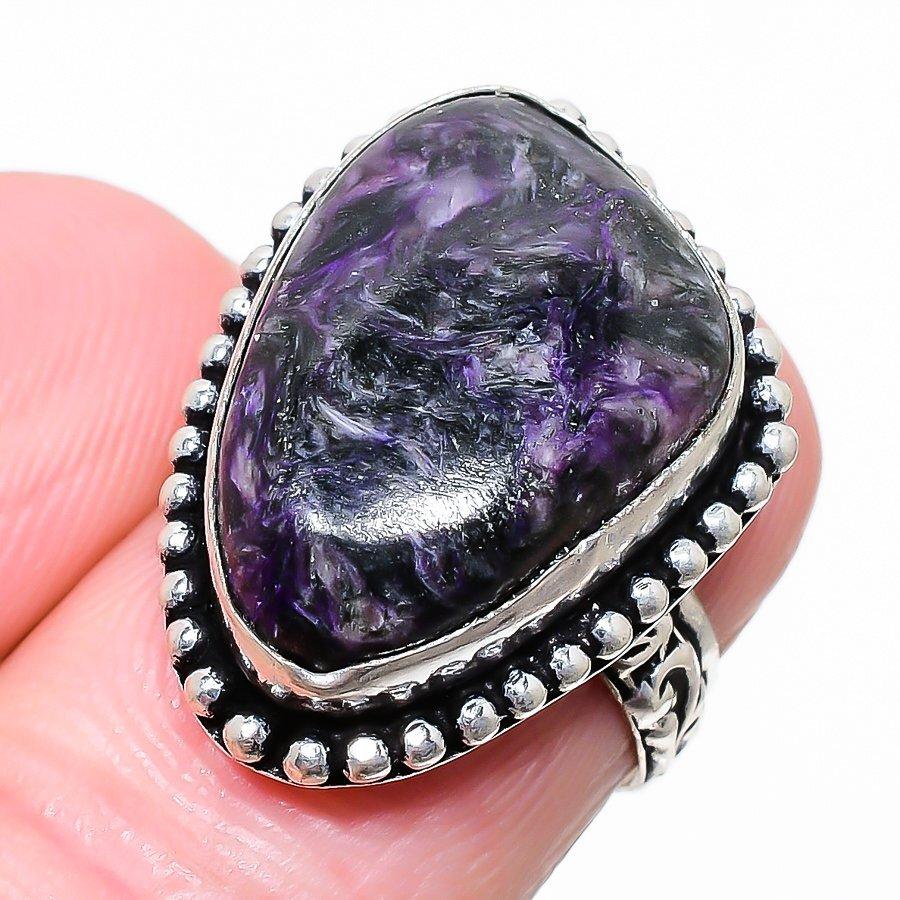Russian Charoite Gemstone 925 Sterling Silver Jewelry Ring Size 6 Y148