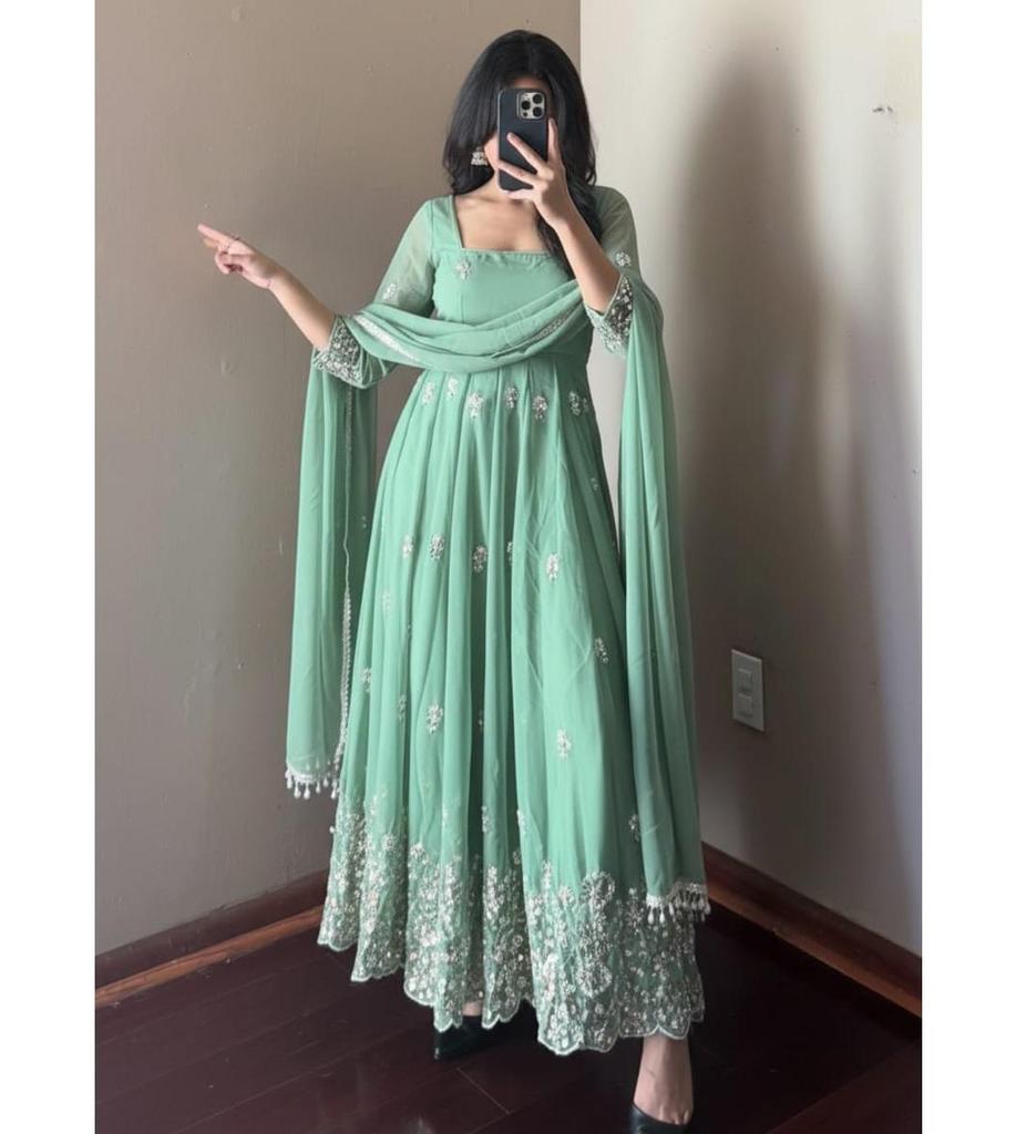 Women Bollywood Anarkali Heavy Faux Georgette Salwar Suit Indian Designer Party Wear Gown Pant Dupatta Set