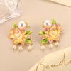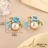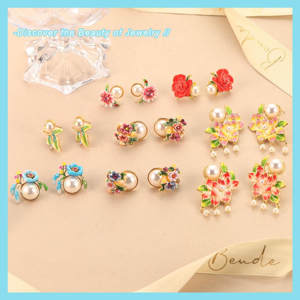 Flower Pearl Stud Earrings Enamel Oil Dripping Flower Mini Love Mori Design Sense Light Luxury Earrings Women