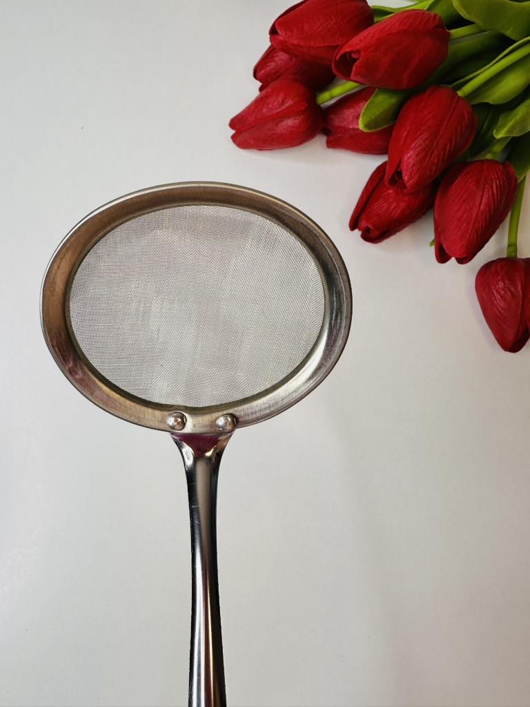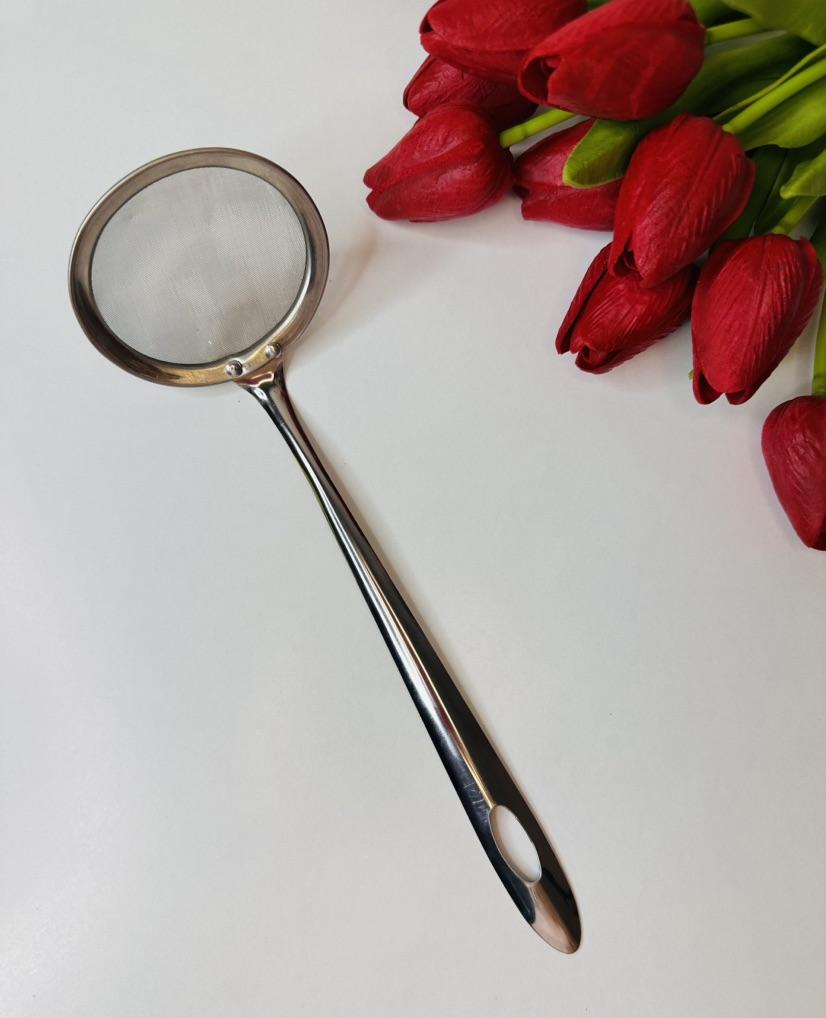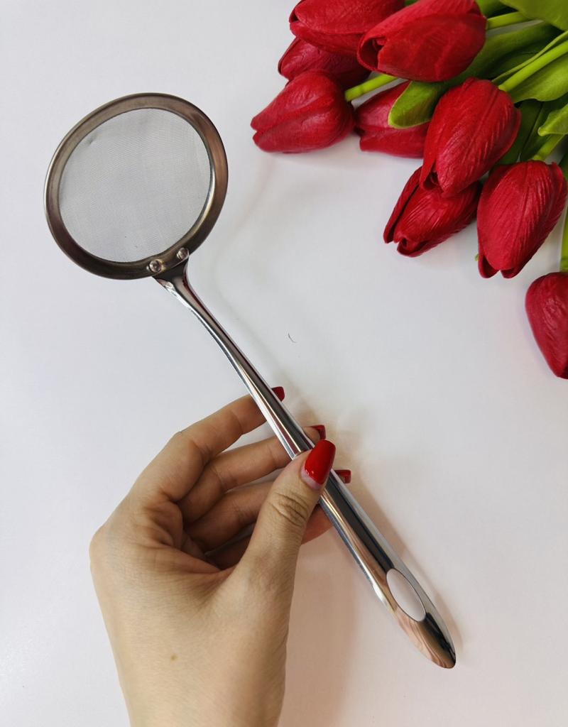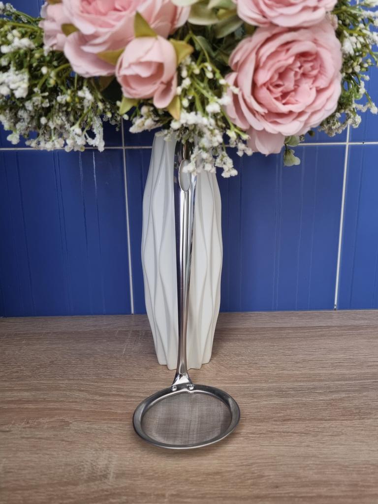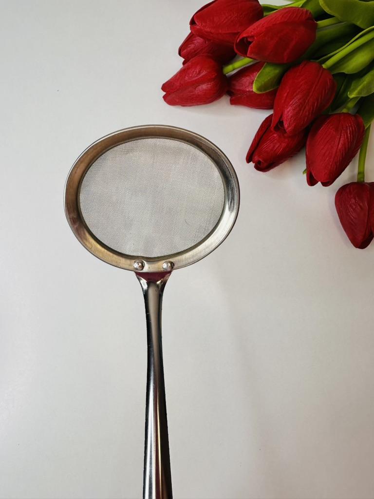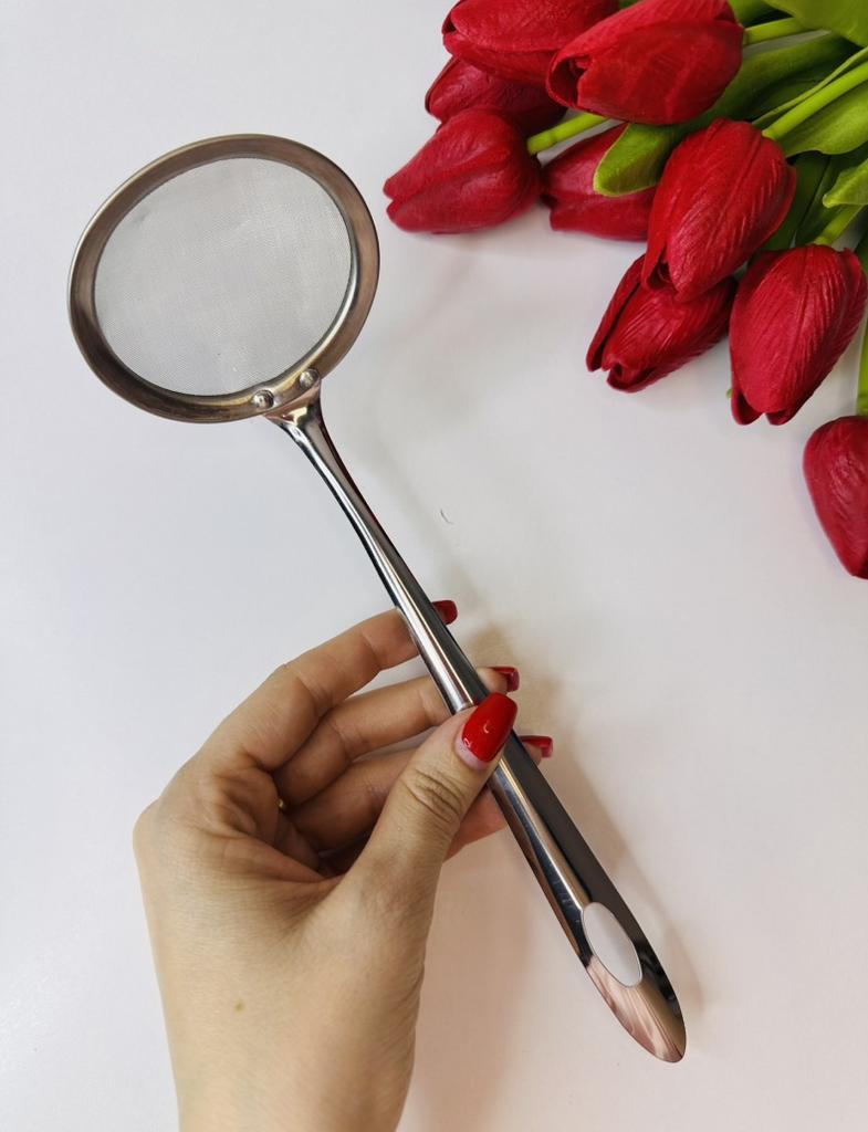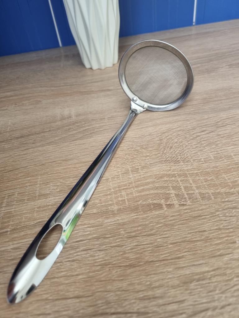 🥄 Steel Colander: A "Never without again" in the kitchen ⭐⭐⭐⭐⭐ I was looking for a colander that was sturdy, easy to handle, and easy to clean, and this stainless steel model exceeded expectations. Why I recommend it: Solid construction: Unlike classic cheap strainers that tend to bend or break after a few uses, this one is solid and well-built. The handle is sturdy and offers an excellent grip, allowing you to handle the strainer safely even when filtering hot liquids.. Fine and precise mesh: The mesh is dense and well-tensioned, ideal for filtering broths, removing impurities, or sifting dry ingredients without anything passing where it shouldn't.. Practical design: The hole at the end of the handle is perfect for hanging it and keeping it always within reach, taking up very little space. Ease of washing: Being entirely made of steel, it does not retain odors and cleans up in an instant, both by hand and in the dishwasher, always returning shiny. Ideal for: It's a versatile tool: excellent for filtering tea, draining small portions of vegetables, sifting powdered sugar or flour, or for skimming. An indispensable accessory for those who love to cook with care.. In summary: A simple, but high-quality product, that does exactly its job and promises to last for years. Excellent value for money!