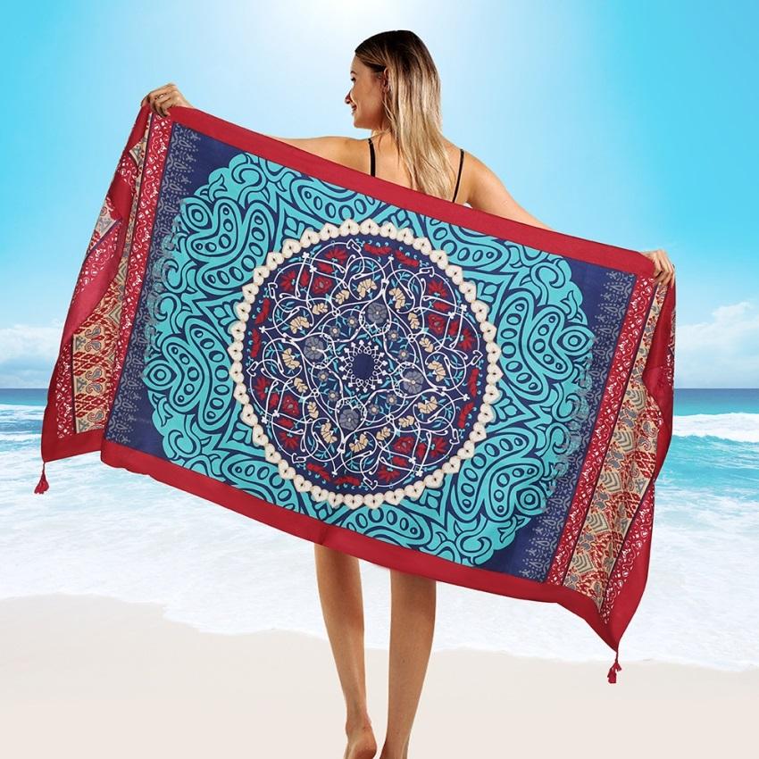 Fashions 90x180cm Twill Cotton Pareo Beach Cover-Ups Women Large Beach Dress Bikini Bathing Swimwear Cover Up Sarong Wrap Scarf