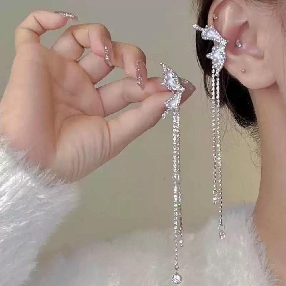 1 Pair Shiny Zircon No Piercing Earring Luxury Design Tassel Earring Ear Cuff Female Accessories