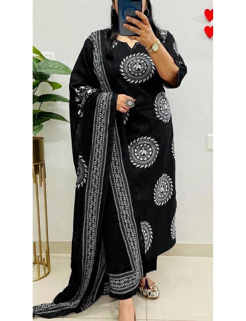 Women Designer Cotton Salwar Suit Indian Bollywood Party Wear Top Tunic Kurta Pant Dupatta Set