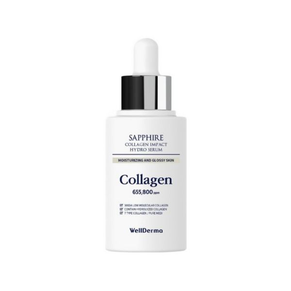 Product Description: The Wellderma Sapphire Collagen Impact Hydro Serum delivers intense hydration and firming care with a powerful blend of collagen and sapphire extract to nourish dry and tired skin. Its lightweight yet deeply moisturizing formula helps improve elasticity, enhance radiance, and leave skin feeling supple and refreshed. Perfect as a daily moisturizing step that boosts skin texture and restores youthful bounce.