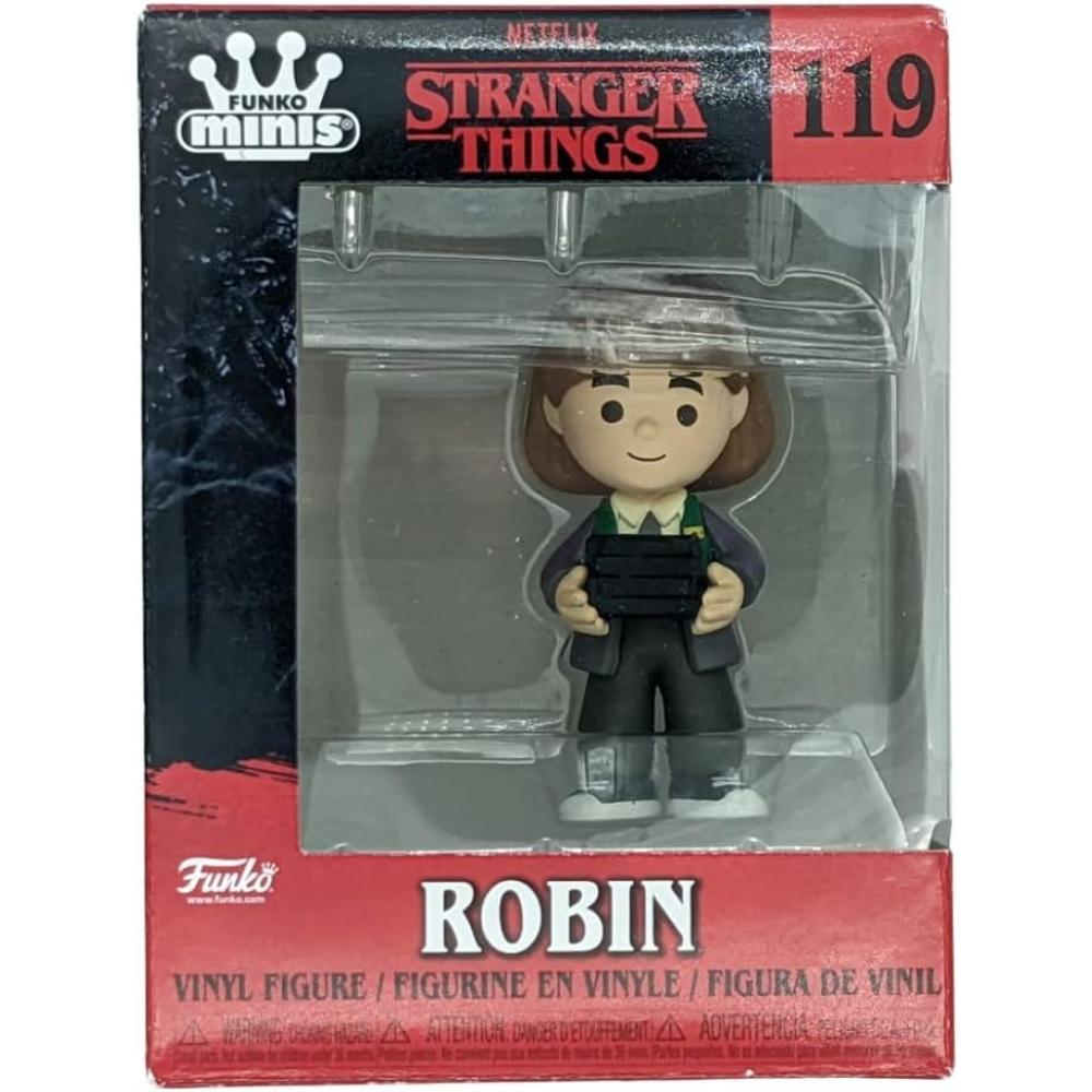Funko Mini: Stranger Things Season 4 Robin figure is a vinyl figure modeled after a character from the popular series "Stranger Things." This product stands approximately 2.5 inches tall, making it suitable for collectors and fans.