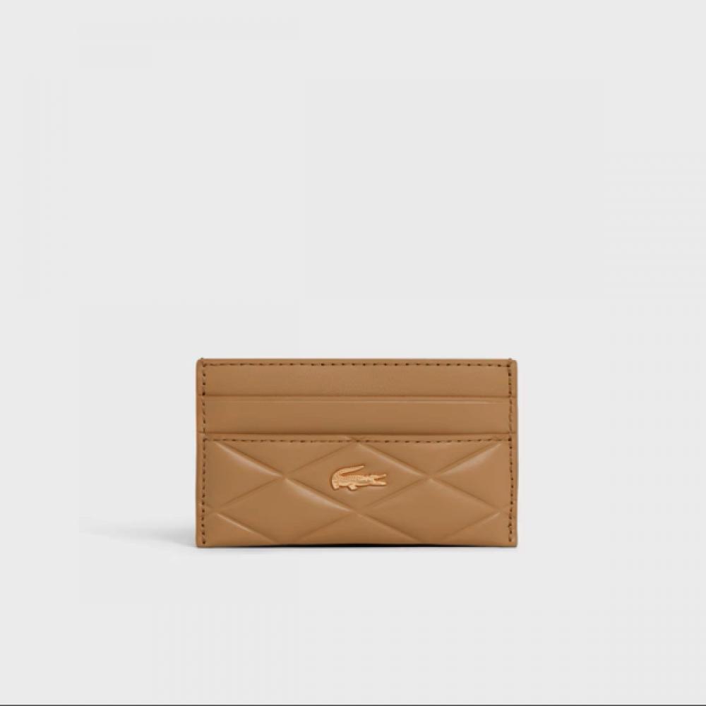 The Lacoste Crocodile Card Wallet features a sleek black design with several card slots inside, making it easy to organize cards and essentials. Its slim shape allows for easy storage in handbags or pockets.