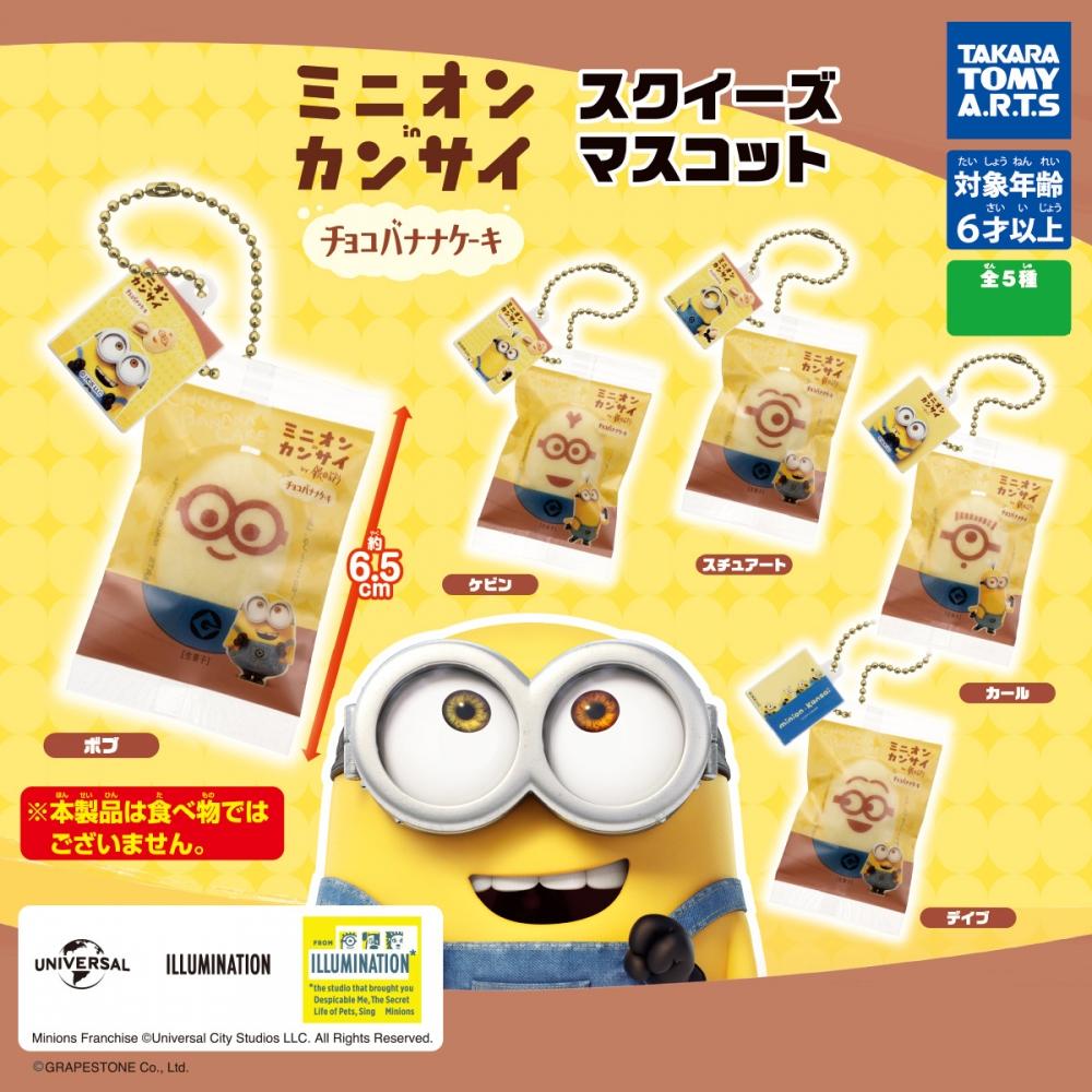 The Minion in Kansai Squeeze Mascot is a cute capsule figure inspired by 'Minions' characters, reinterpreted using the design of the representative snack package 'Squeeze' from the Kansai region of Japan. Each Minions character features a design similar to actual snack packages, and a box contains a total of 8 capsule figures arranged randomly, allowing you to encounter a variety of Minions characters. The figures are approximately 65mm in size and can be used as keychains or decorations.