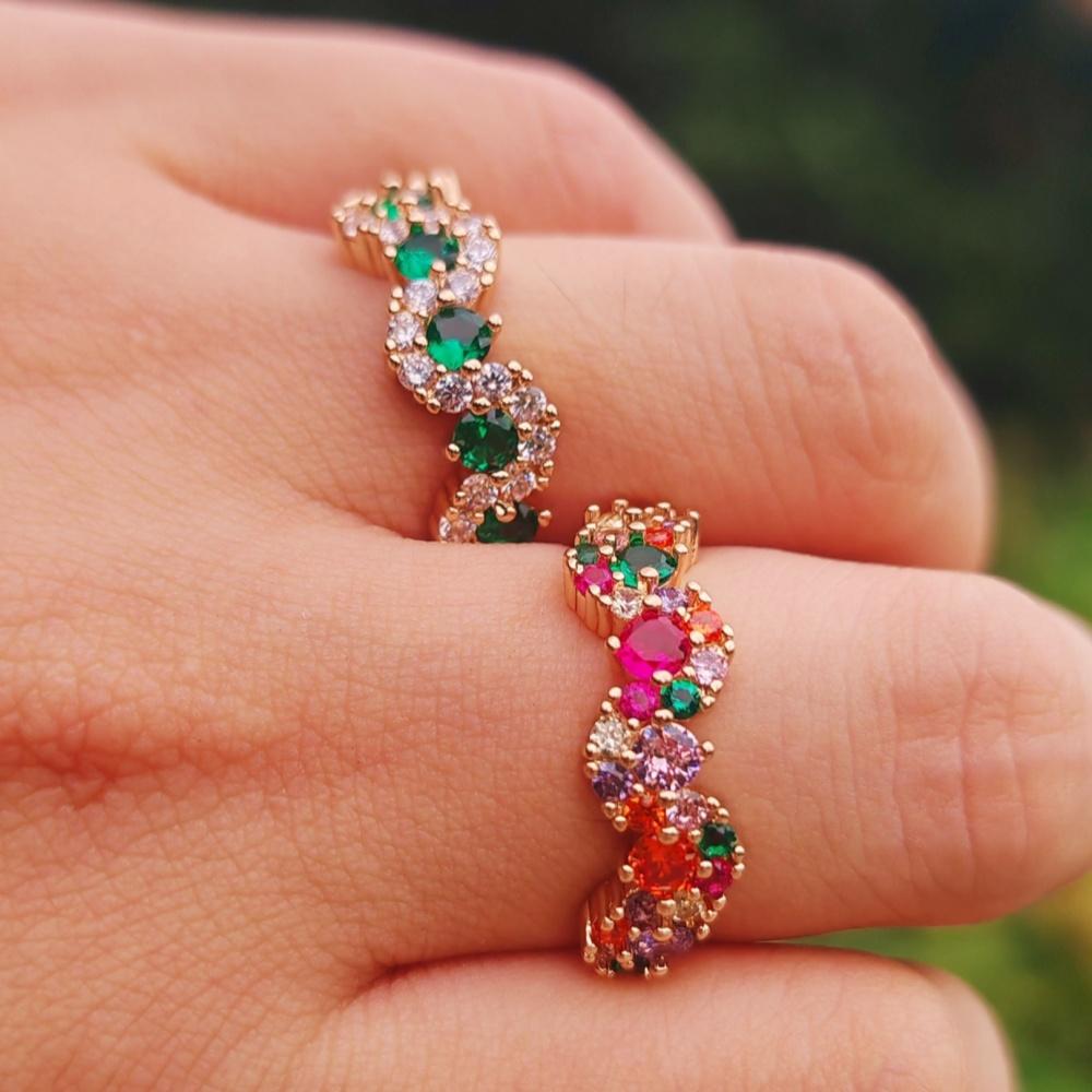 Luxury Green Emerald Open Ring for Women Zirconia Halo Adjustable Finger Ring Wedding Party Jewelry Gift