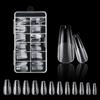 4. Apply extension nail gel on nail mold, use nail art pen with slip solution to make gel smooth.