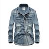 Spring and Autumn Denim Shirts, Men's Pure Cotton Casual Long Sleeved Shirts, Loose Fitting Men's Top