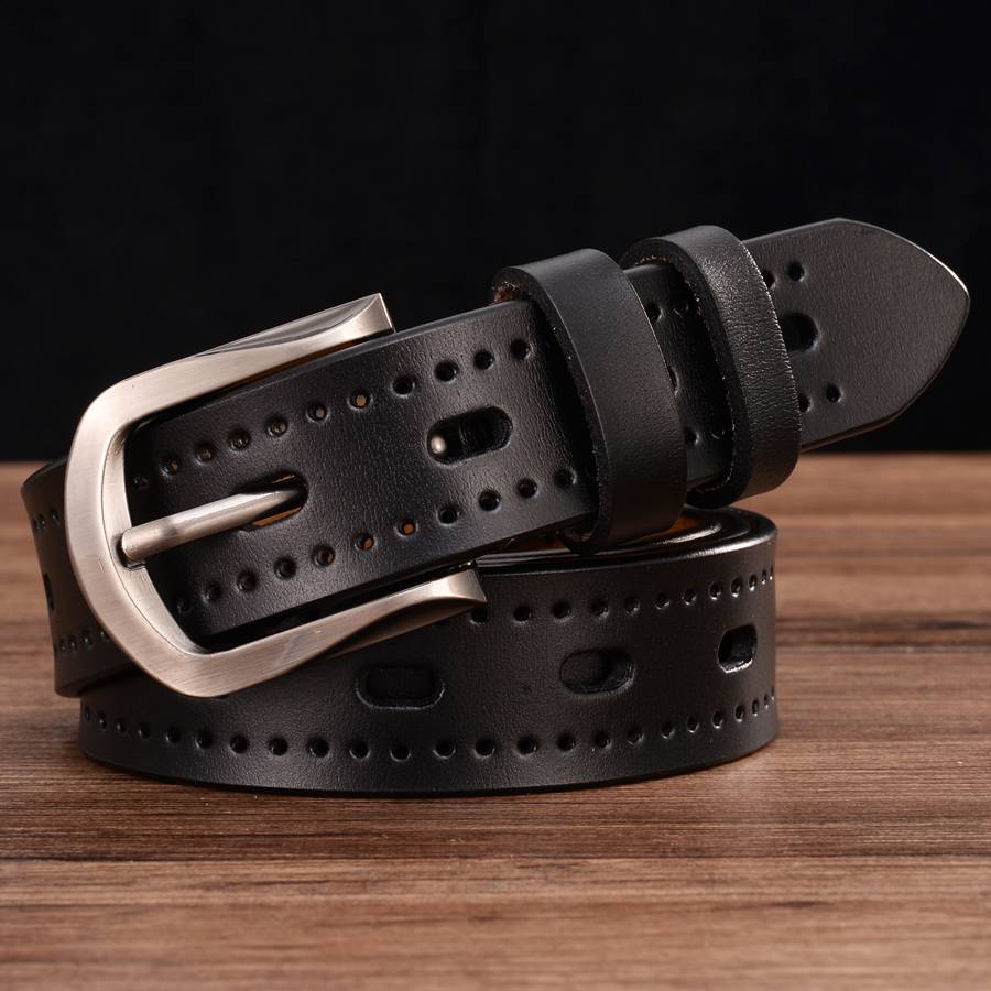 Women's Leather Belt Female Strap Waistband Hollow Out Belt Pin Buckle Length:95-110cm Black\Red\Coffee\Orange