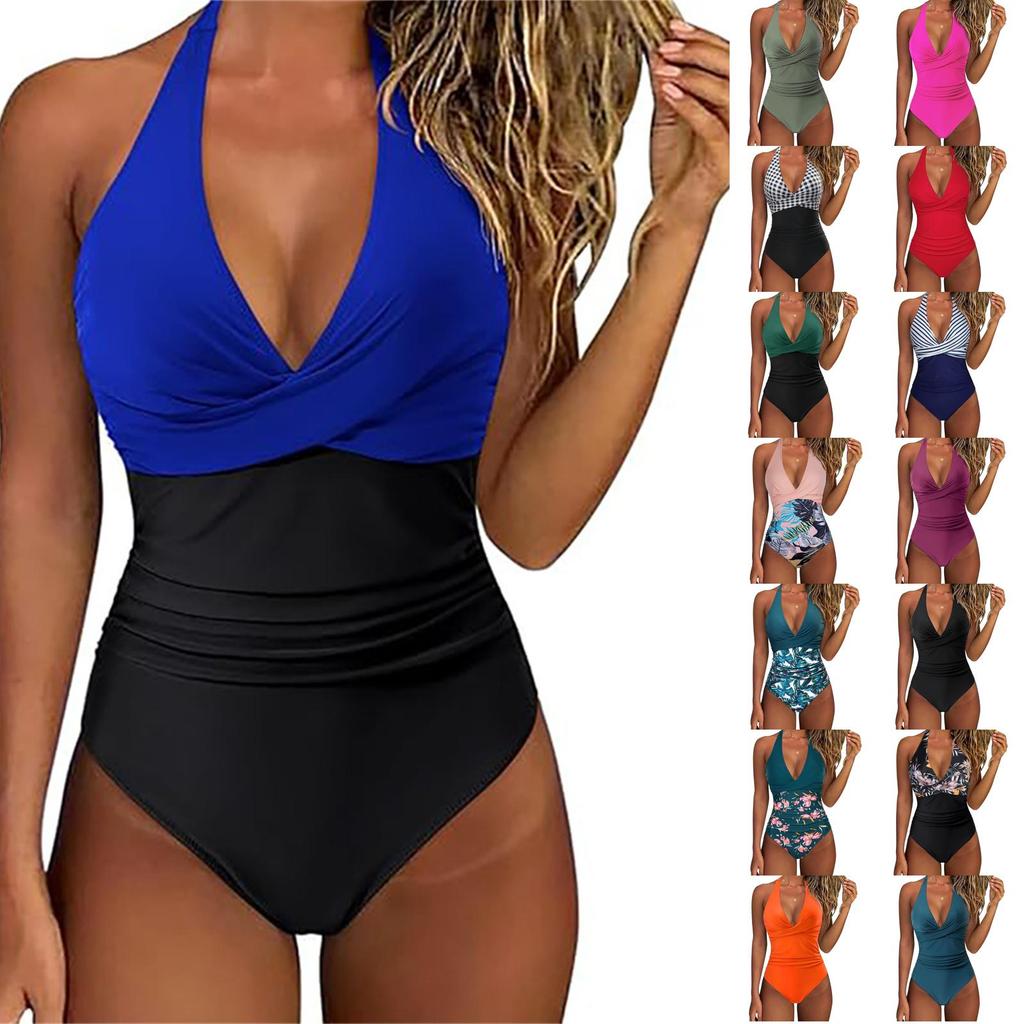 Women's Tight-fitting Backless Sexy Cross-color One-piece Swimsuit