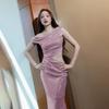One-shoulder Blue Evening Dress Birthday Party Temperament Adult Ceremony Art Test Performance Dress French Slit Fishtail Skirt