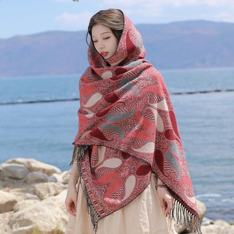 Bohemian Cloak Xizang Yunnan Thickened Scarf Women's Retro National Style With Over Cape