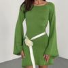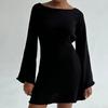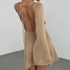 New Sexy Backless Round Collar Cover-Ups Solid Color Knit Beachwear Stylish Horn Sleeve Beach Suit Female Holiday Wrap Dress