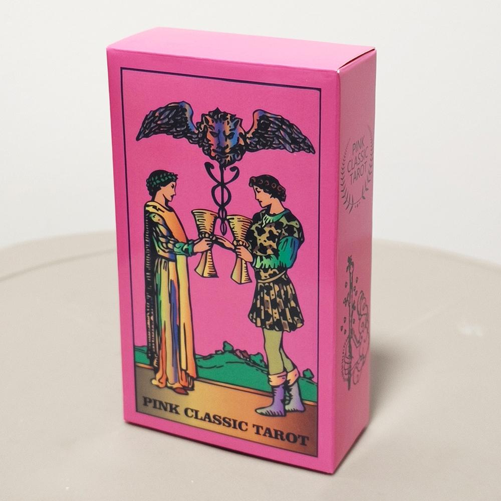 Dive into a world of cosmic color with this stunning Pink Neon Tarot Deck. This unique 78-card deck reimagines the classic Rider-Waite Smith imagery with a vibrant, trippy, neon color palette, creating an eye-catching and modern tool for divination and self-reflection.