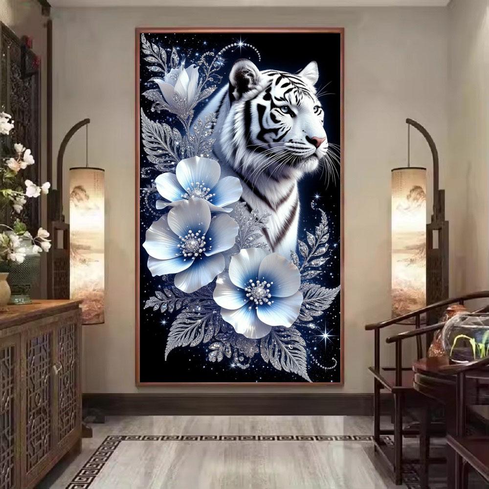 Beautiful White Tiger and Flowers Picture DIY Diamond Painting Cross Stitch Full Drills Diamond Mosaic New Collection Home Decor