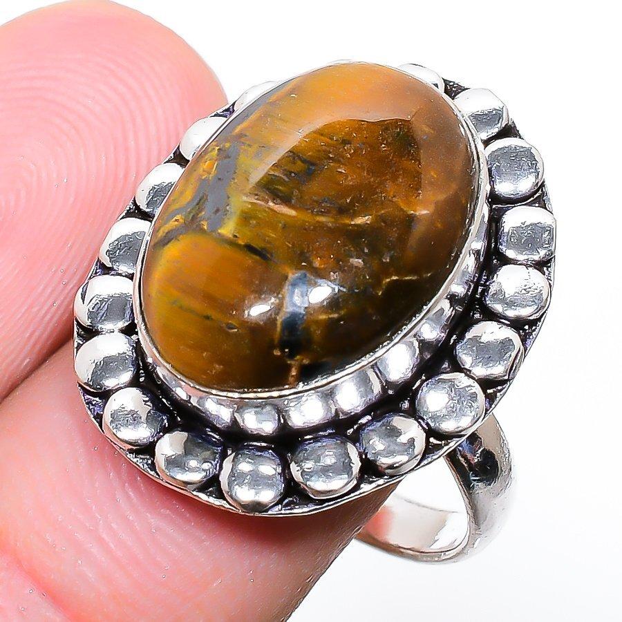 TItle:- Tiger Eye Handmade Gemstone 925 Sterling Silver Jewelry Ring 8 O178