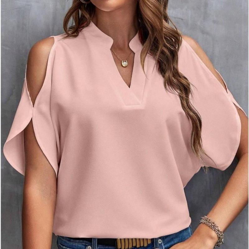 EastRogue Women's Summer Solid Color V-neck Off-the-shoulder Loose Chiffon Top