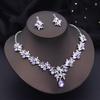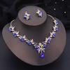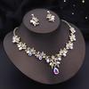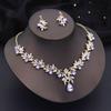 Luxury 3 Pcs Wedding Jewelry Sets for Women Dangle Earrings and Necklace Sets Bridal Costume Accessory