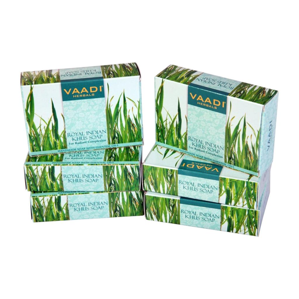 Vaadi Herbals Royal Indian Khus Soap Bar Pack With Olive And Soyabean Oil For Smooth Refreshing Bathing Care 75 G X 6