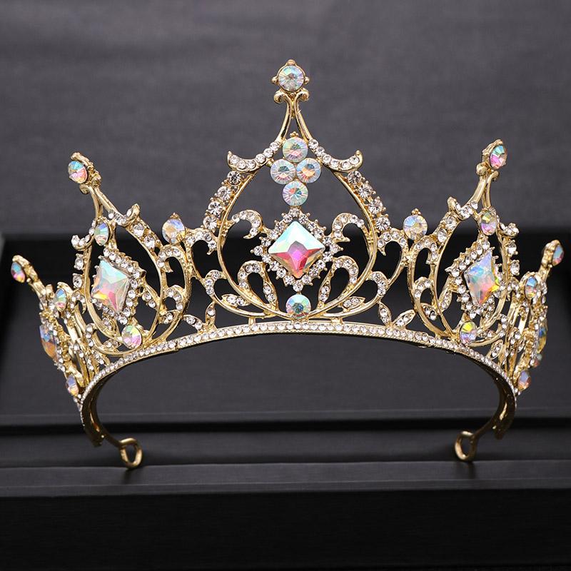 Fashion Wedding Hair Accessories Bridal Headdress Baroque Colored Rhinestone Crystal Crown Party Prom Queen Jewelry Crown Gift