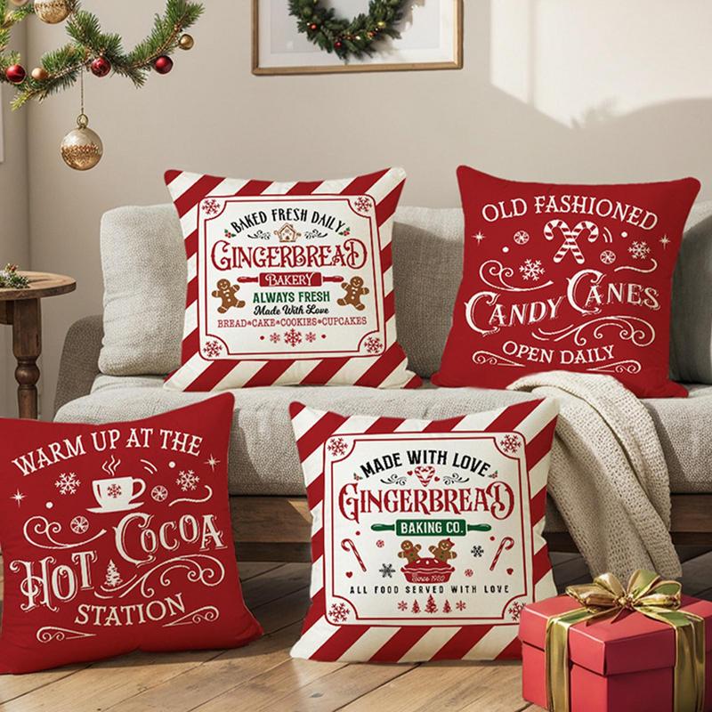 Christmas Pillow Covers 4 Pieces 18X18 Inch Square Seasonal Pillowcases Living Room Cushion Cover For Home Farmhouse Couch
