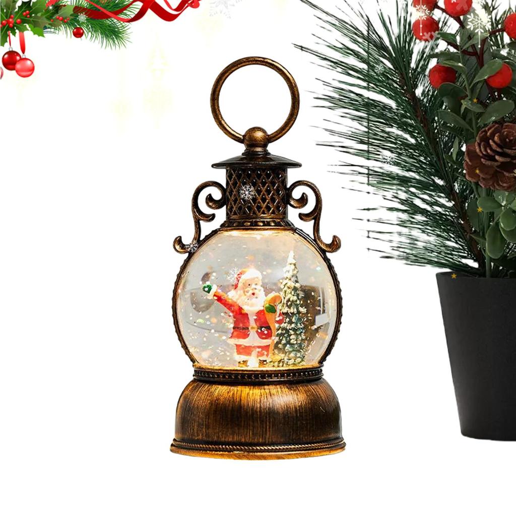 Retro Christmas Snow Globe Lantern Hand-held Christmas Snow Globe Lantern Glitter Decor USB Charging Christmas Snowball Lantern