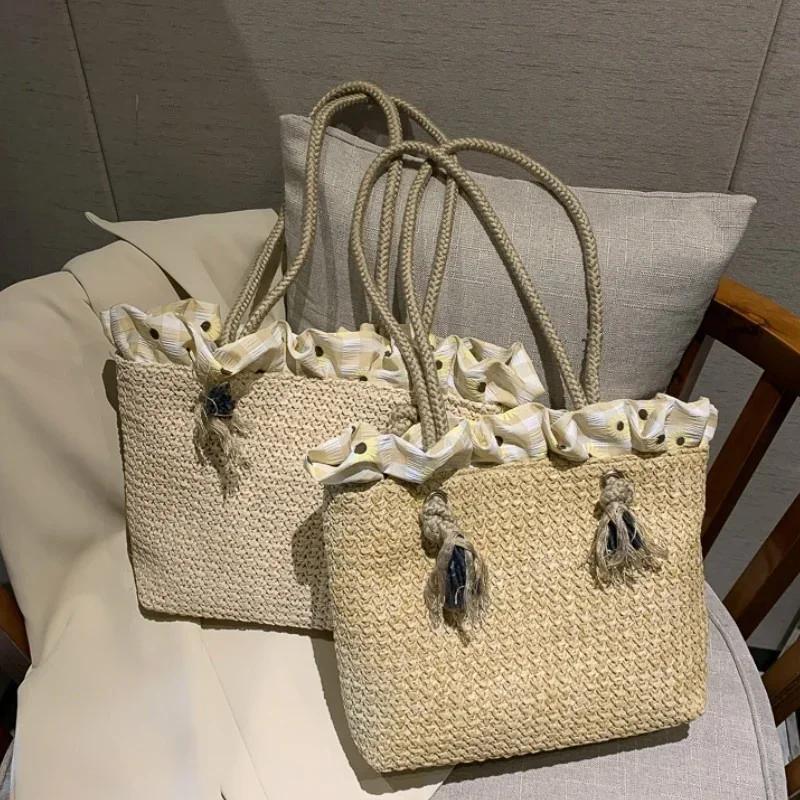 Summer Grass Woven Bag Women's Trendy Korean Edition Casual Large Capacity Western Style Handbag Woven Shoulder Bag