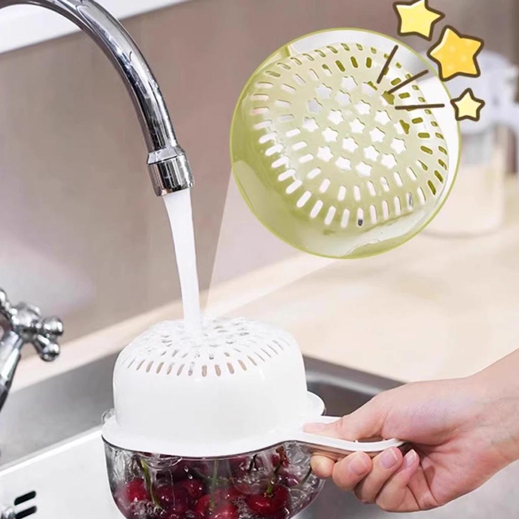 Fruit Washing Bowl With Strainer Kitchen Colanders 2 In 1 Rotatable Strainer Colander With Handle For Washing Cleaning Berries