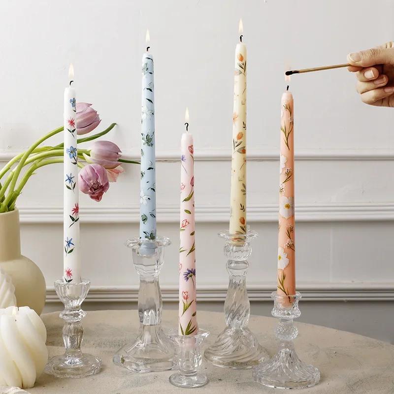 2PCS/Box Printed Long Candle European-Style Romantic Candlelight Dinner Wedding Festival Marriage Decoration Smokeless Candle