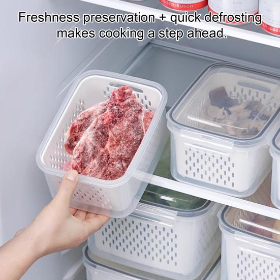 This food storage box is crafted from high-quality, non-toxic plastic, ensuring durability and safety for everyday use. Its fall-resistant and odorless material withstands both high and low temperatures, making it microwave and refrigerator safe. Featuring a tightly sealed, transparent food-grade lid, it effectively blocks dust and odors to keep your food fresh. The inner removable colander promotes ventilation with evenly distributed holes, preventing moisture buildup and extending the shelf life of fruits and vegetables.