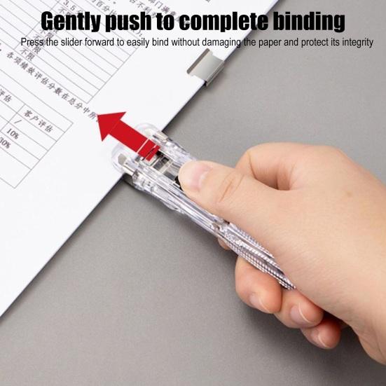 This clip pusher set offers a convenient alternative to traditional staplers by securely binding large volumes of paper without punching holes or damaging documents. Designed as a mini, compact metal clip stapler, it's perfect for office and home use, ideal for organizing documents, notes, test papers, and even sealing snack or document bags. The stainless steel clips are reusable and easy to remove, holding papers firmly without leaving staple marks or scratches.
