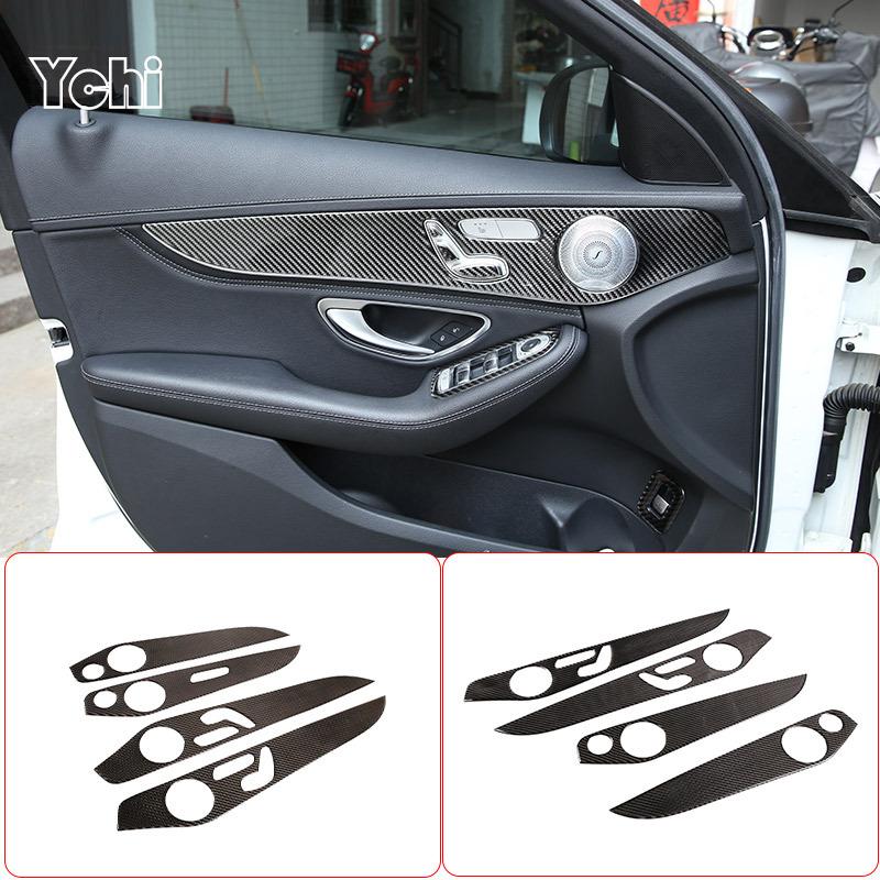 Soft Carbon Fiber For Mercedes Benz C GLC Class W205 2014- Interior Door Decoration Panel Cover Trims Car Accessories