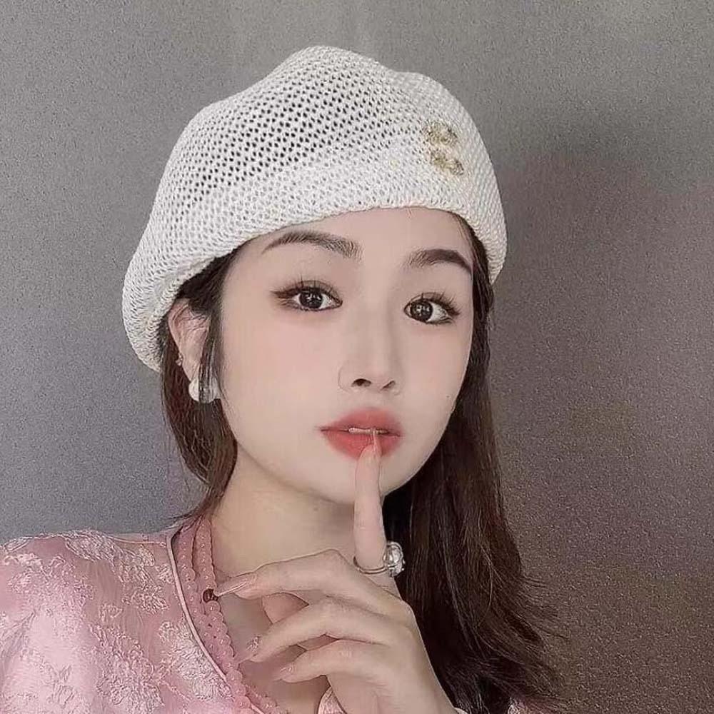 Korean Style Hollow Out Forward Cap Solid Color Vacation Beach Hat Woven Sun Beret Cap Daily