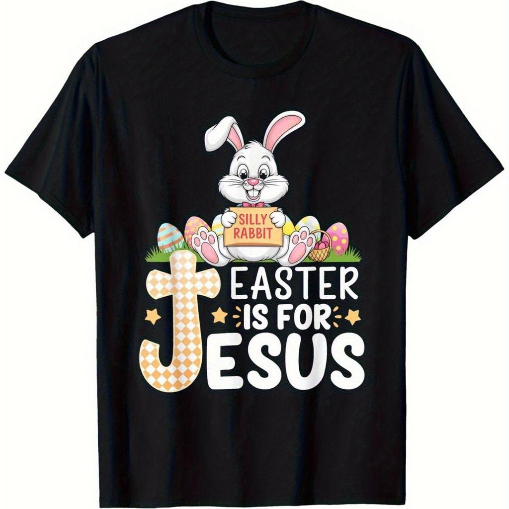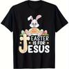 Jesus Is For Easter Christian Graphic Tee Funny Bunny Cross Print Cotton T-Shirt Casual Trip Gift