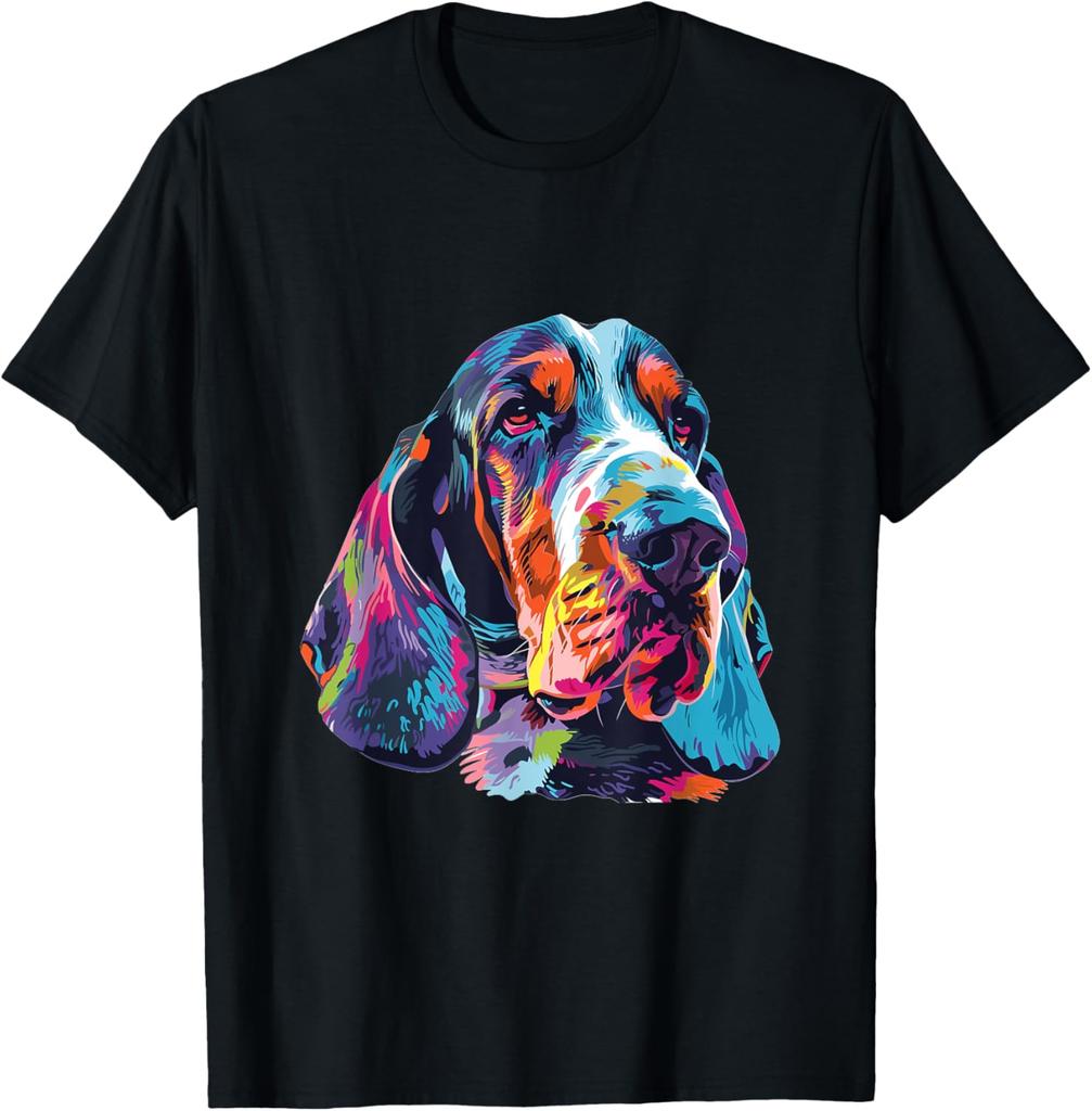 Basset Hound Colorful Pop Art Graphic T-Shirt Men Women Casual Cotton Crew Neck Tee