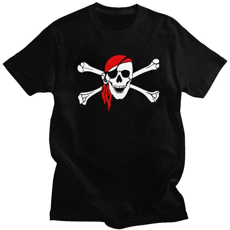 Custom Jolly Roger Skull Cross Bones Pirate Flag T Shirt Men Short Sleeves Pure Cotton Tshirt Tees Fashion Tshirts