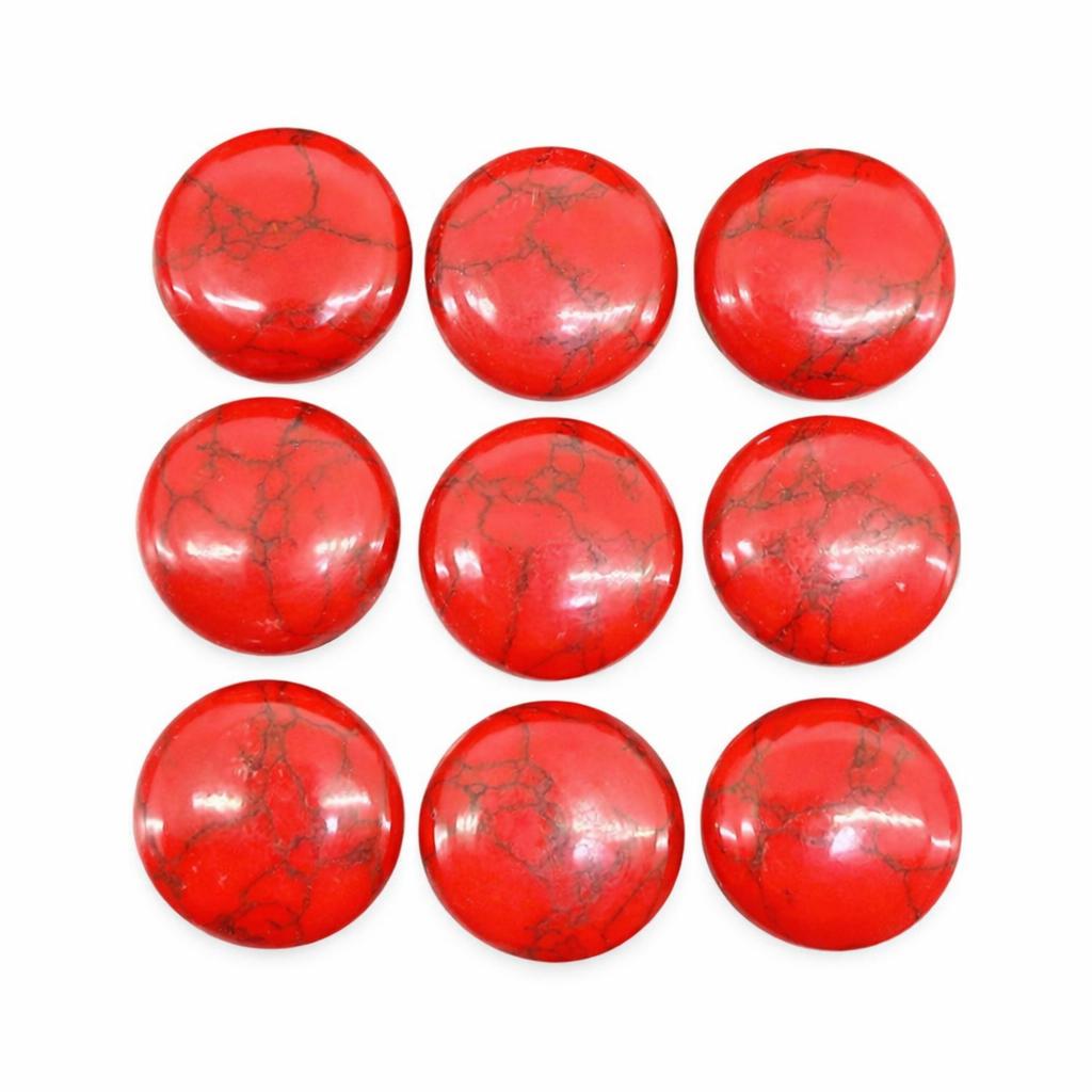 Red Turquoise Cabochon Lot – Round Flat Back Gemstone Cabochons for Jewelry Making
